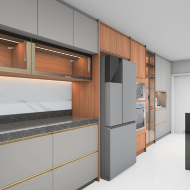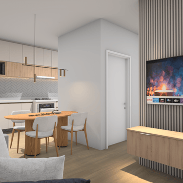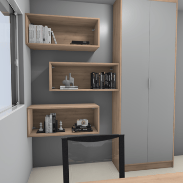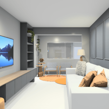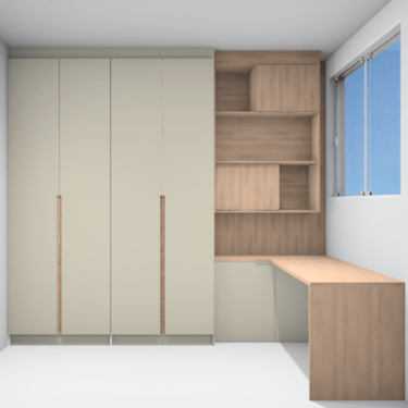 O projeto permite visualizar o ambiente antes da execução da marcenaria, evitando decisões erradas e garantindo que cada detalhe seja pensado com antecedência.